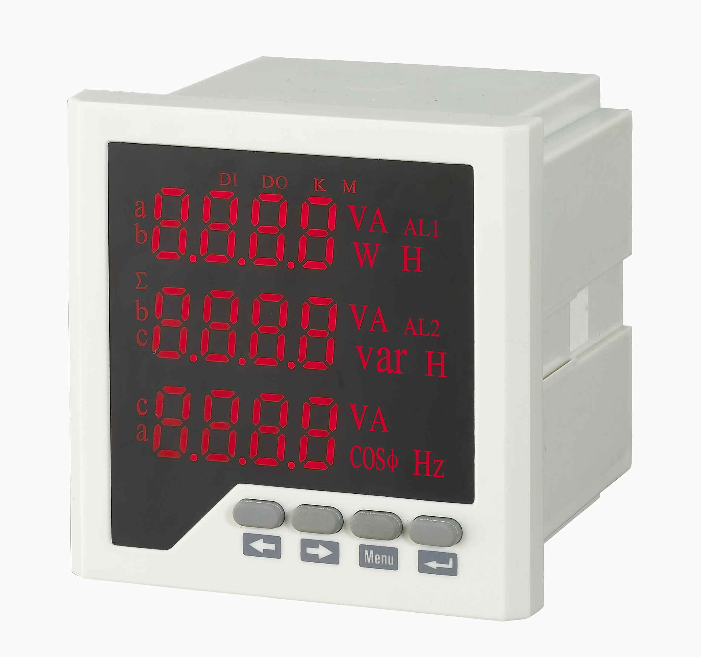 電力儀表,一種具有可編程測(cè)量、顯示、RS485數(shù)字通訊和電能脈沖輸出的多功能智能電力儀表,能夠完成三相電參量測(cè)量(三相電壓、三相電流、有功功率、無(wú)功功率、視在功率、功率因數(shù)、頻率等)、諧波測(cè)量、電網(wǎng)質(zhì)量分析(電壓波峰系數(shù),電流K系數(shù),電話波形因子,電壓電流不平衡度,電壓電流序量等)、四象限電能計(jì)量、復(fù)費(fèi)率電能計(jì)量、最大需量記錄、SOE事件記錄、數(shù)據(jù)顯示、采集及傳輸,可廣泛應(yīng)用變電站自動(dòng)化、配電自動(dòng)化、智能建筑、企業(yè)內(nèi)部的電能測(cè)量、管理、考核。測(cè)量精度0.5級(jí),實(shí)現(xiàn)LCD現(xiàn)場(chǎng)顯示和遠(yuǎn)程RS-485數(shù)字接口通訊,采用標(biāo)準(zhǔn)MODBUS-RTU通訊協(xié)議。